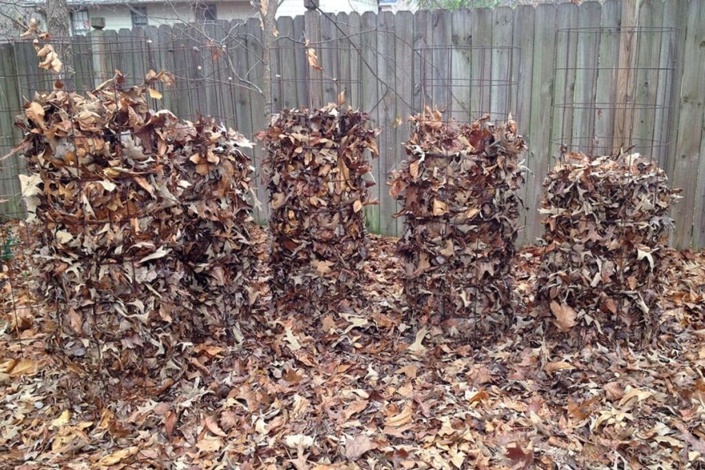 In exposed spots, short runs of burlap, snow fencing, or chicken wire can hold leaves in place until spring. For small beds, even a single section of wire fencing curved into a semicircle around the windward edge can make a big difference. If you want something reusable, build a leaf corral: form a circle from hardware cloth or wire mesh about three feet across, fill it with leaves, and let them settle into leaf mold by next year.
