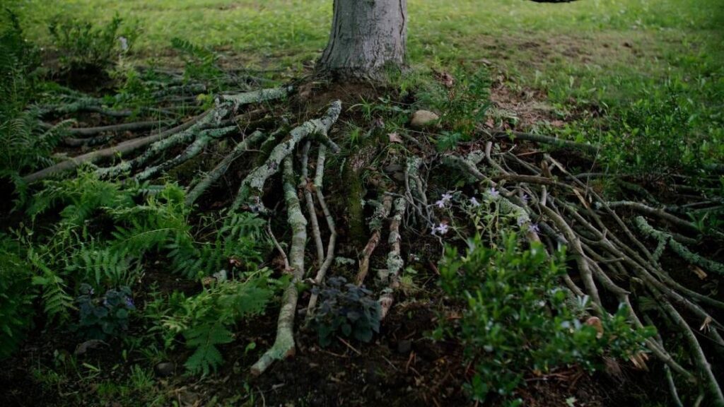 This mimics natural forest duff, helping retain moisture and build organic matter. Keep leaves a few inches away from trunks to prevent moisture-related decay.
