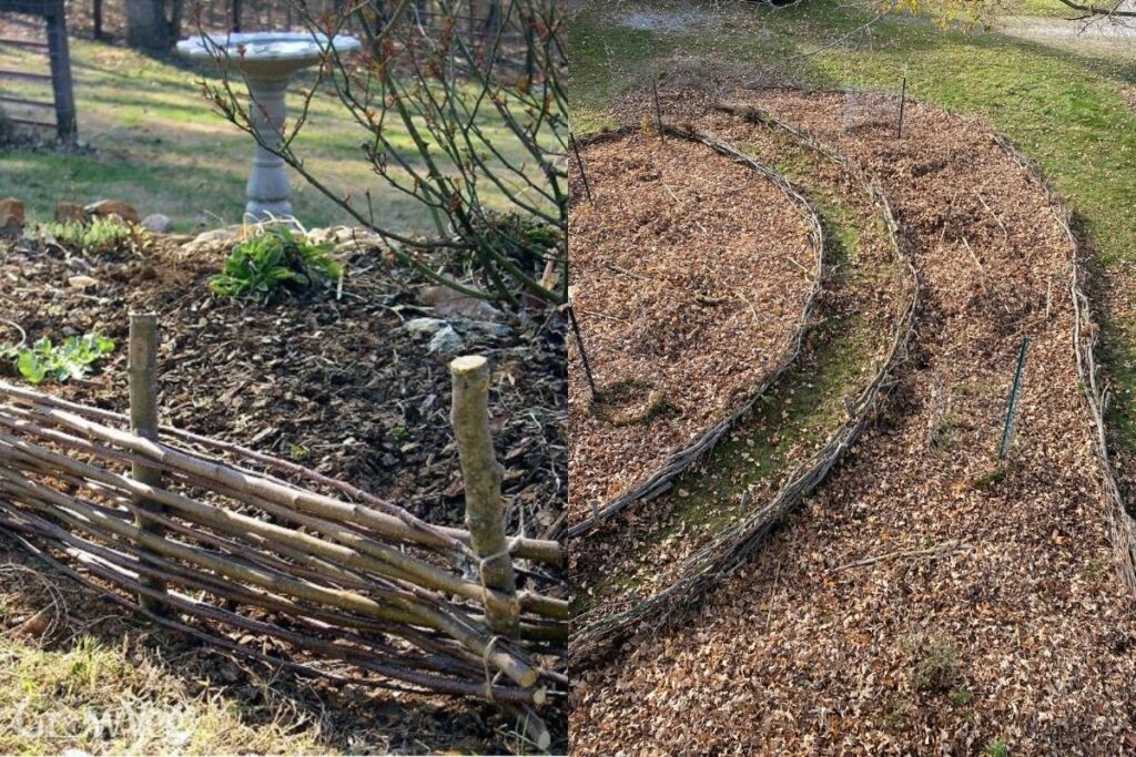 Collect fallen sticks about pencil to thumb thickness and weave them between a few short upright stakes to form a low barrier; six to ten inches tall is usually enough. This simple wattle fence keeps leaves from tumbling onto paths or lawns. It’s a centuries-old garden technique that works beautifully in native plant beds because it blends right in. Over time, the sticks soften and decompose, adding organic matter to the soil.