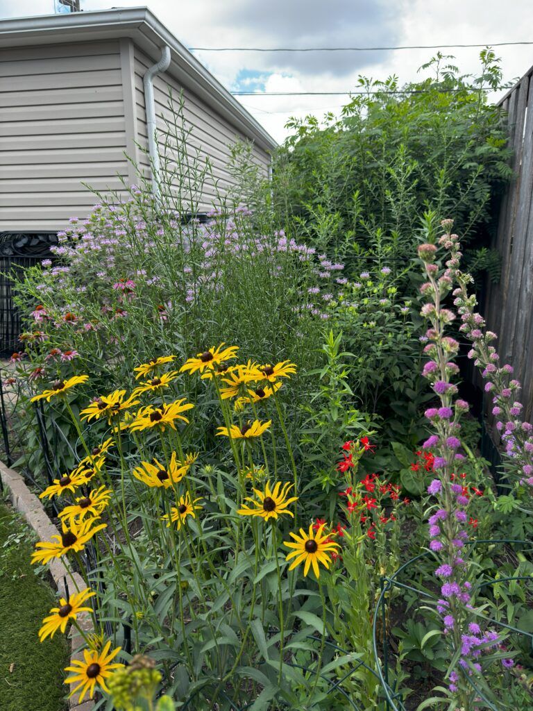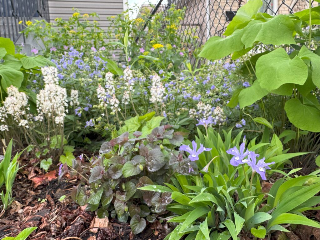 Garfield moved into her Chicago home in 2019, where she inherited struggling roses and hydrangeas in raised beds in the front yard. As a first-time gardener she was initially unsure what direction she wanted to take. “I thought about gardens in the neighborhood and public parks nearby that made me happy,” she says. “I’m blessed to have expert gardeners around me, and one neighbor in particular has a beautiful native garden. I knew I wanted something like that.”