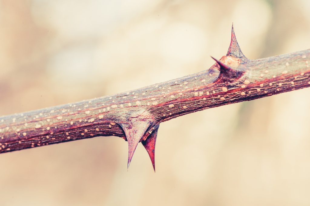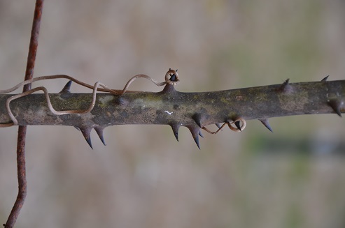 Of course, it does not matter what kind of spikey structure sticks you; you use language that you should not use. The three possible sticky or spikey structures that arm plants include thorn, spine and prickle. Thorns and spines are always on the stem, while prickles can be on a stem, leaf, or fruit. Thorns always have vascular tissue; spines may or may not have vascular tissue; and prickles never have vascular tissue. Leaves or a leaf may be produced on a thorn. There is a lot of confusion over the use of these three words and are often used interchangeably. The spikey structures on roses are actually prickles, but every rose has its thorn would not sound right with the correct anatomical term of “Every rose has its prickle”.